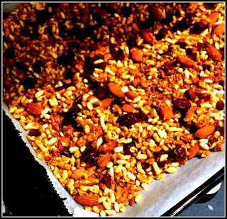 Reserve, deixe arrefecer ligeiramente e depois parada em pedaços se necessário. Junte os armados e as bagas goji, mexendo. Quando estiver completamente arrefecido guard num recipiente hermético.