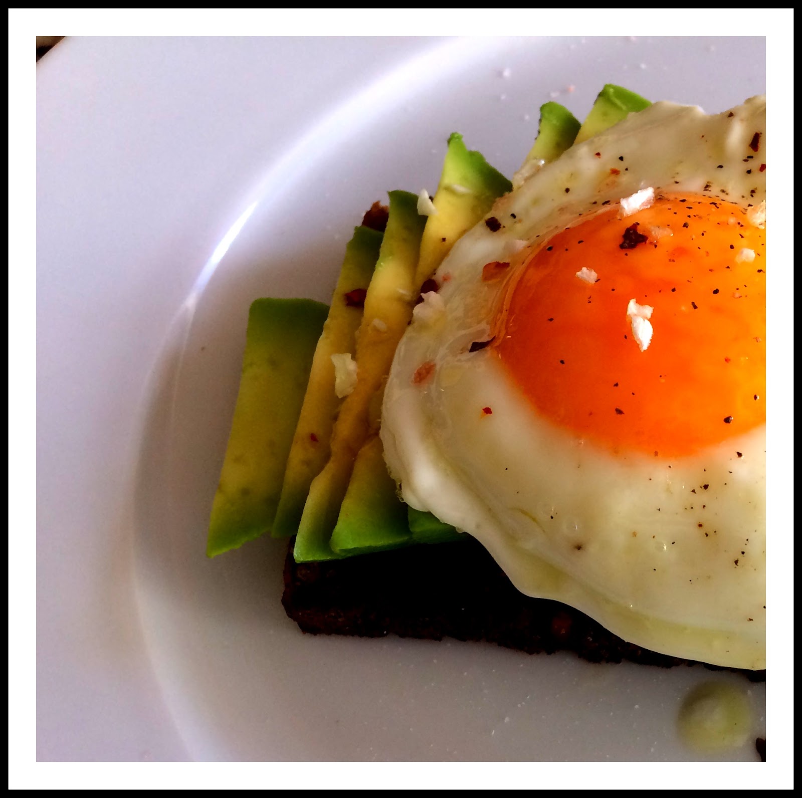 Frie the two eggs in a little bit of olive oil (half a desert spoon of olive oil), season them and lay them on top of the avocado.